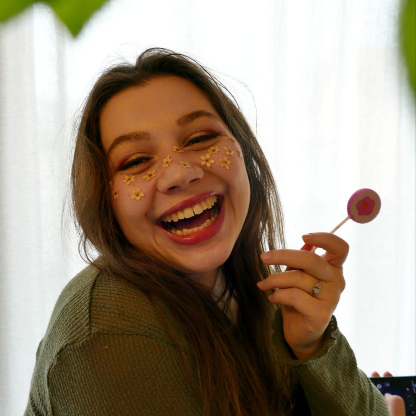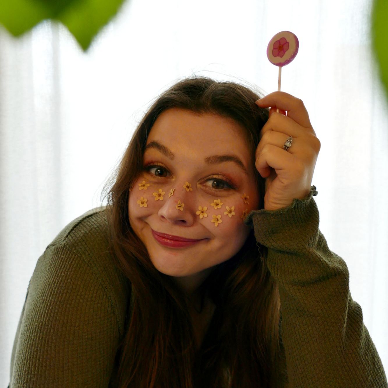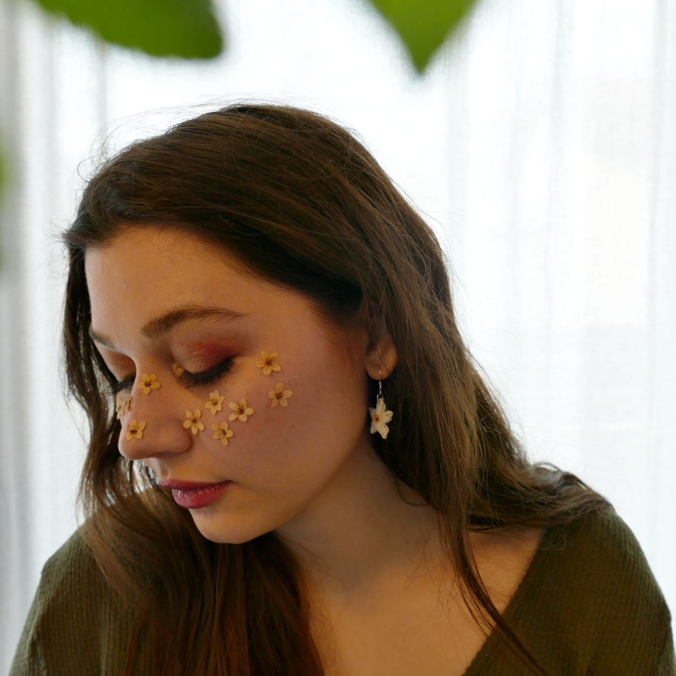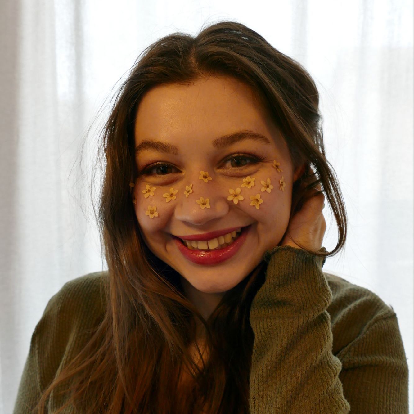 Der Frühling hat mich mit seinen ersten Blumen und frischen Farben zu diesem Look inspiriert. Als Sommersprossen habe ich echte Blumen verwendet die ich letztes Jahr gesammelt und getrocknet habe. Mit Wimperkleber ließen diese sich erstaunlich einfach ankleben und haben wirklich gut gehalten. Für das Augen-Makeup habe ich zu einem kräftigen Pink gegriffen, welches in einen Goldton übergeht. Es ist gar nicht so einfach ein Foto von mir zu machen, auf dem man meinen Lidschatten gut sehen kann. Irgendwie habe ich das Gefühl, bei mir wirkt das schnell unnatürlich. Es mag an meinen Schlupflidern liegen oder einfach daran, dass ich meistens auf Fotos lieber lache, als all zu ernst zu schauen.^^ Unsre kleine Milly kam ganz neugierig nachsehen was ich so treibe und hat sich sogar ganz brav mit ablichten lassen. Ihr eigentliches Interesse galt dabei aber wohl eher der Frage, wieso ihr Kratzbaum plötzlich als Lichtstativ herhalten muss.^^