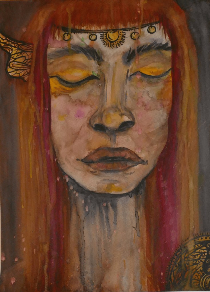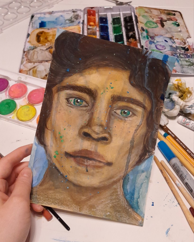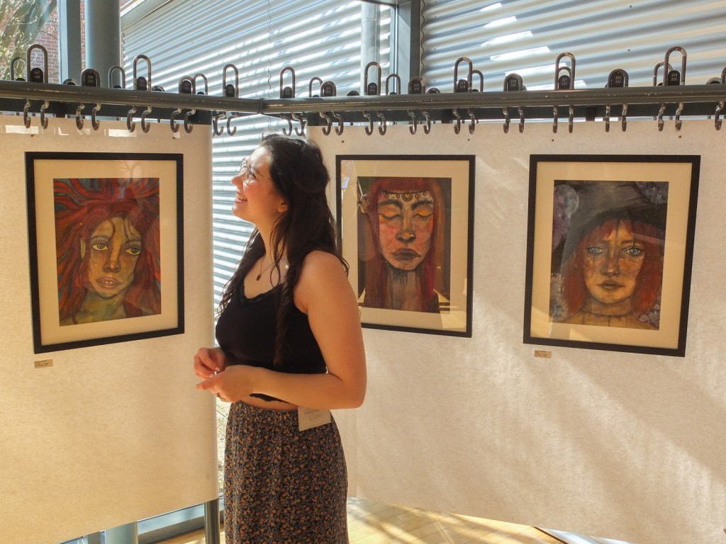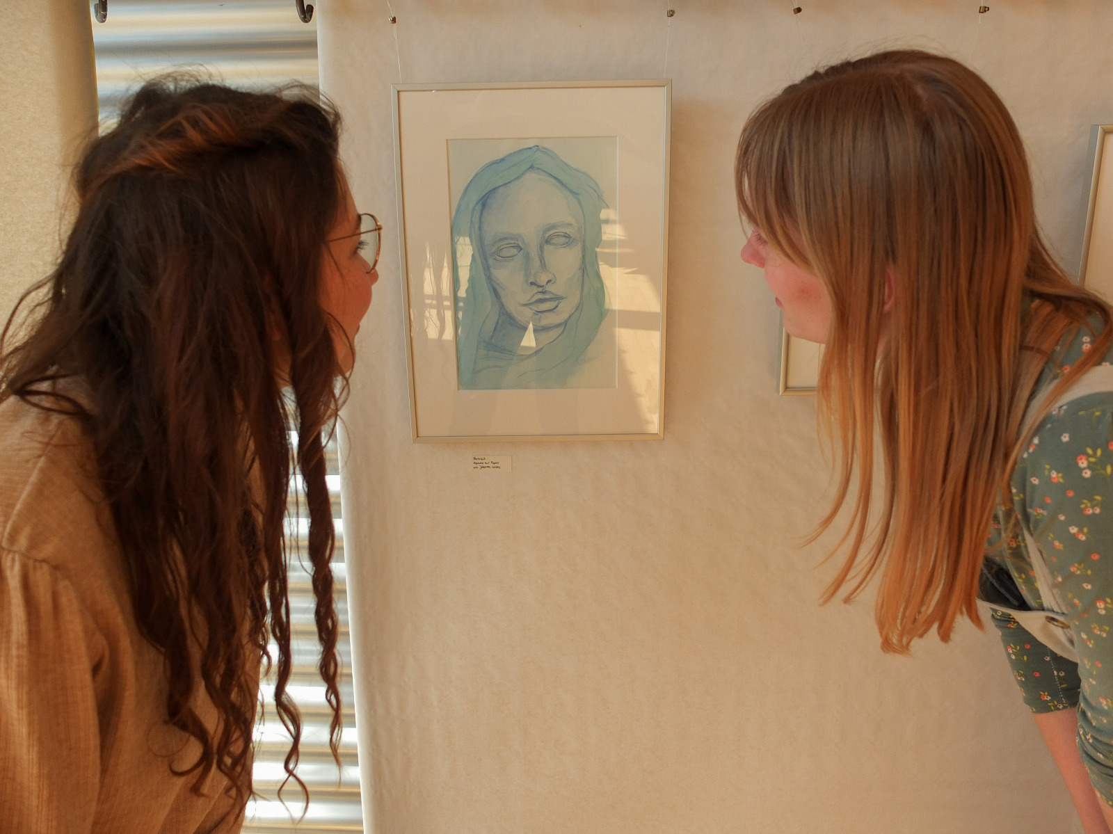 Ich habe mich dafür entschieden hauptsächlich Portraits auszustellen. Die meisten davon habe ich mit Aquarellfarben gemalt. Auch ein paar Zeichnungen habe ich ausgesucht, ebenso wie ein Bild mit Alkoholmarkern und eines mit Tinte.