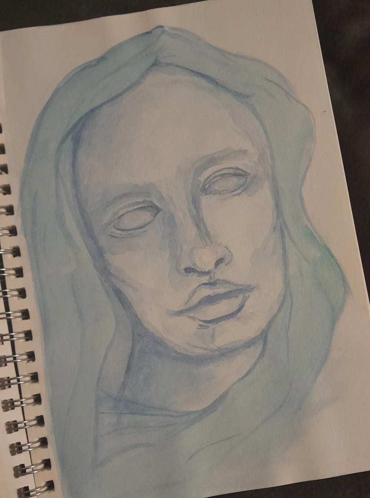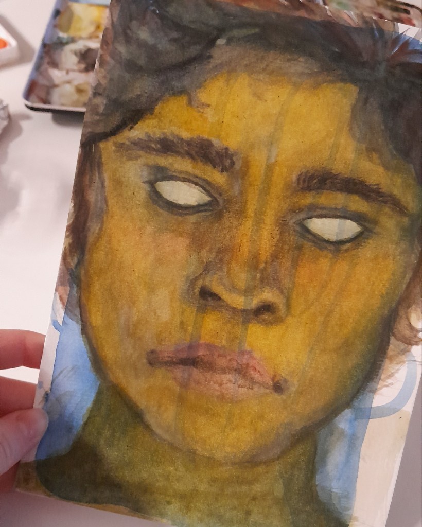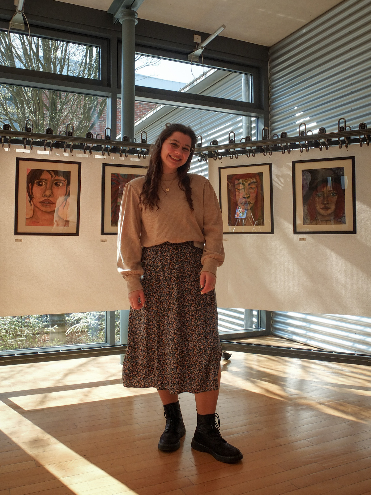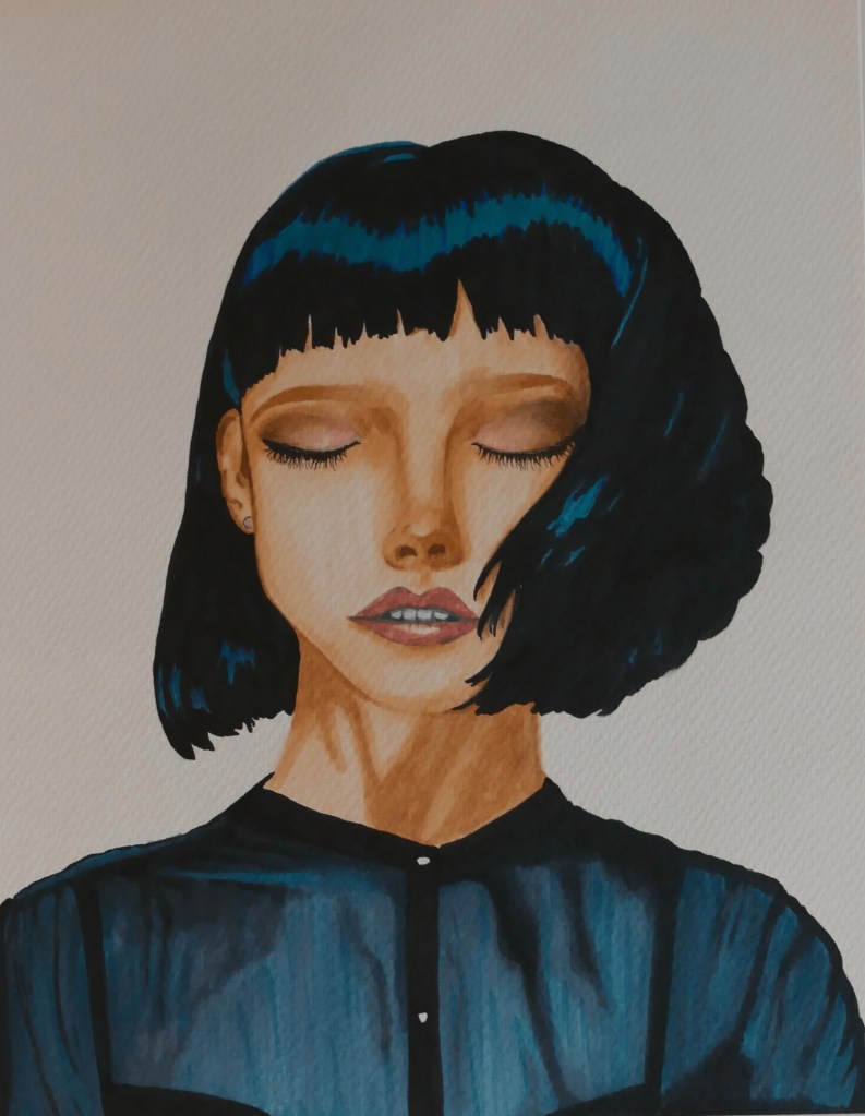 Ich habe mich dafür entschieden hauptsächlich Portraits auszustellen. Die meisten davon habe ich mit Aquarellfarben gemalt. Auch ein paar Zeichnungen habe ich ausgesucht, ebenso wie ein Bild mit Alkoholmarkern und eines mit Tinte.