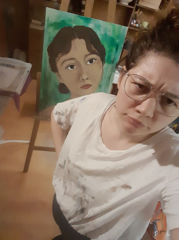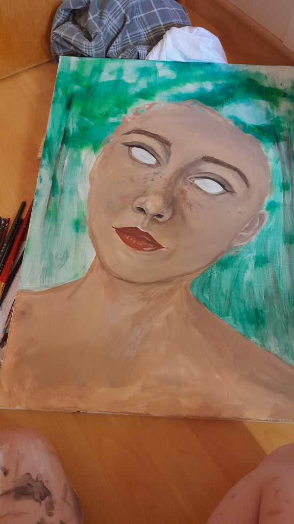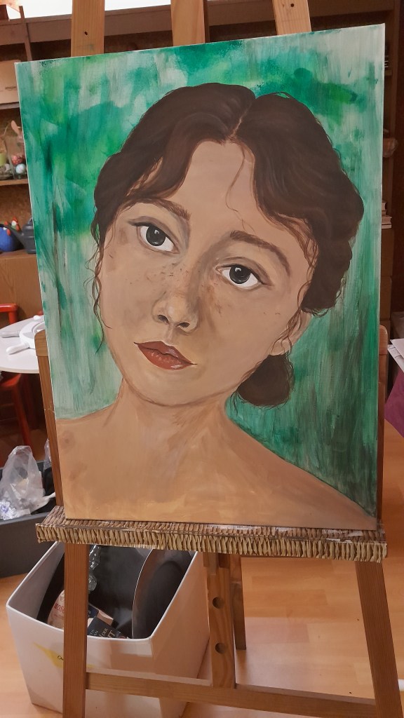 Portraits male ich ganz besonders gerne. Seit ich ein Kind bin male und zeichne ich und schon von Anfang an hat es mich fasziniert Gesichter zu malen. Auch wenn ich manchmal an den Proportionen verzweifelt bin und ich mich daran erinnere wie oft in meinem Leben ich das zweite Auge wegradiert habe, habe ich nie aufgehört mich für Portraits zu interessieren und mich immer und immer wieder ran gewagt. Mein Kunstlehrer hat einmal eines meiner unfertigen Portraits gefunden, bei dem ich aus Angst es kaputt zu machen nicht weitermalen wollte. Bilder die man aus Angst nicht weitermalt sind in der Kunst nichts wert, hat er mir erklärt. Jeder Künstler hat Skizzen und Übungen die nicht perfekt sind, aber nur wenn wir uns trauen uns weiter zu entwickeln, werden wir besser.