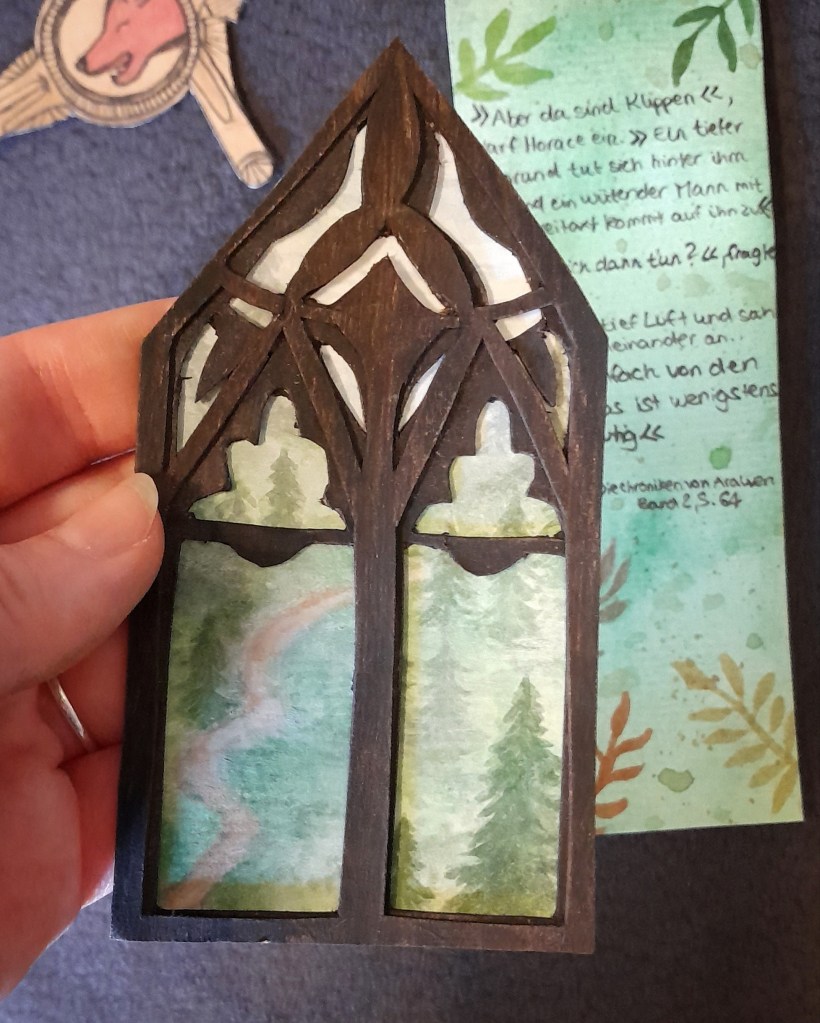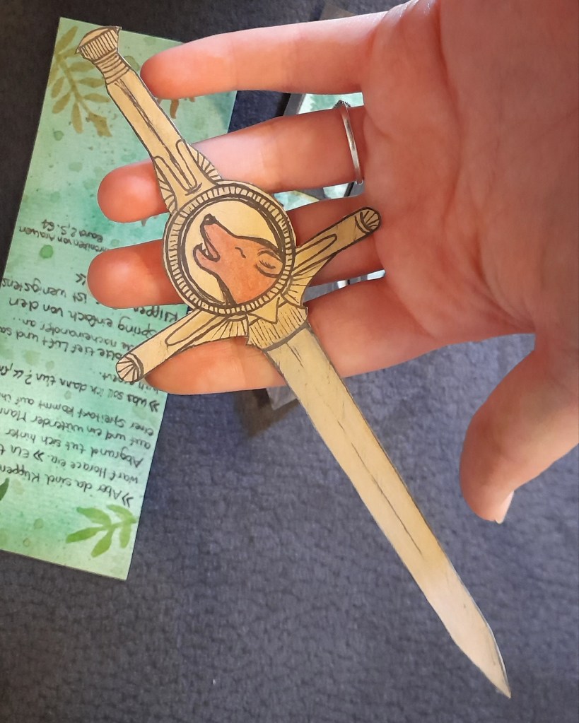 Außerdem hat er noch diese Lesezeichen passend zu seiner Lieblingsbuchreihe „Die Chroniken von Araluen“ bekommen: