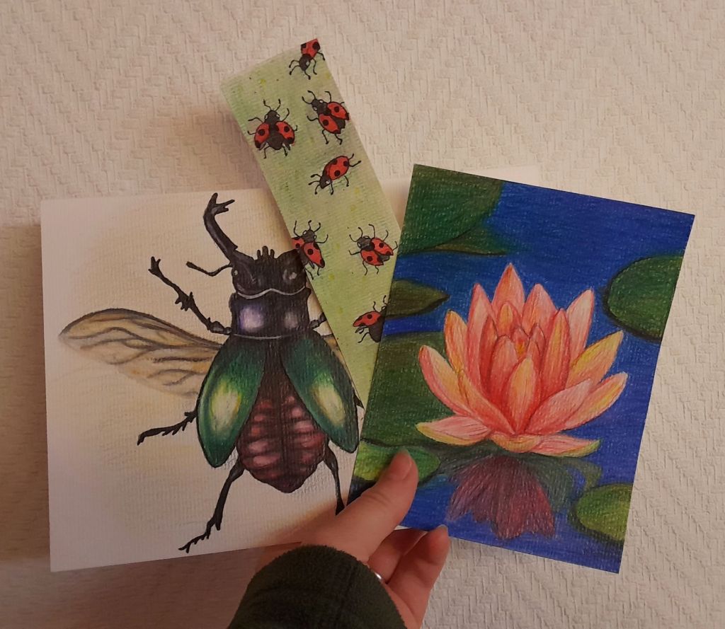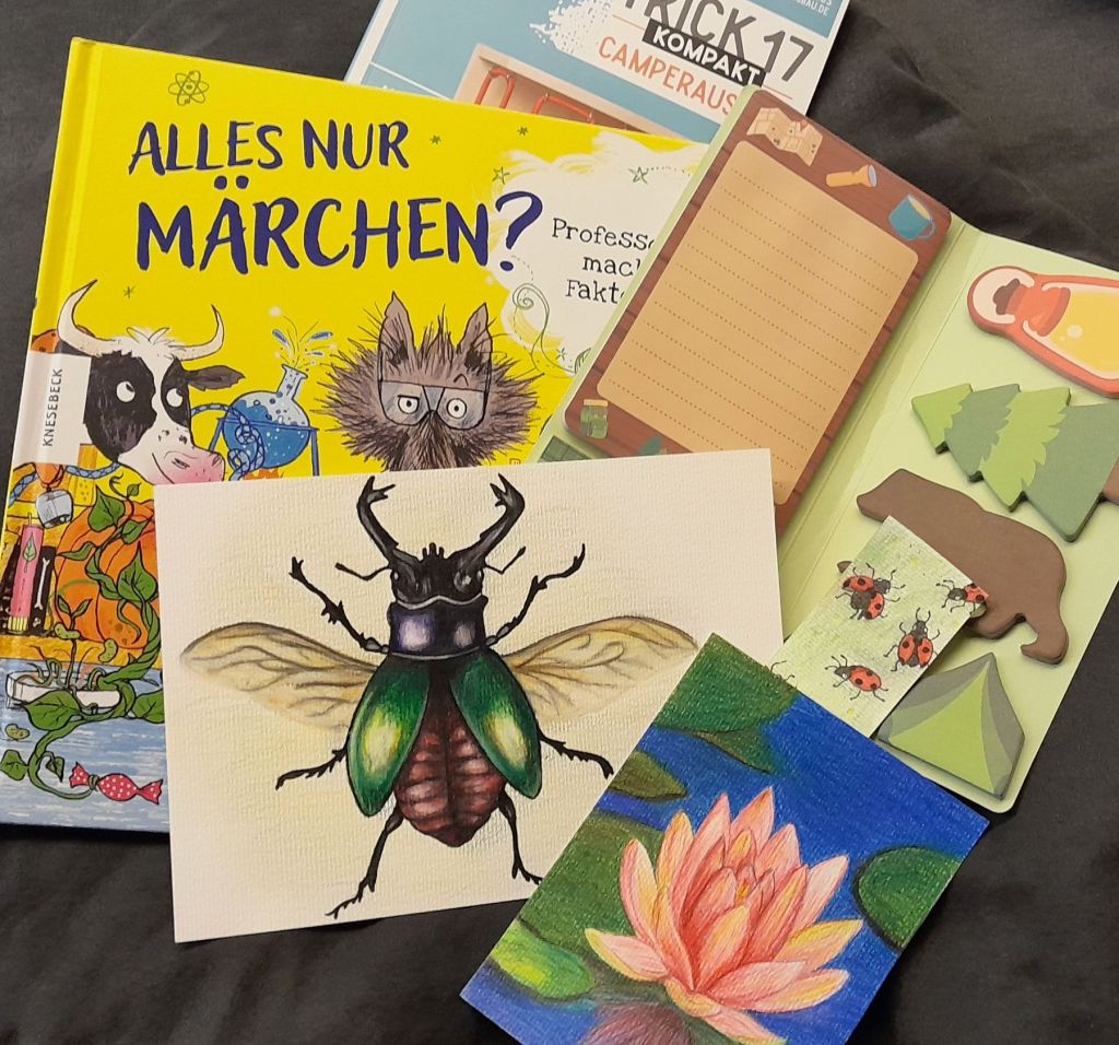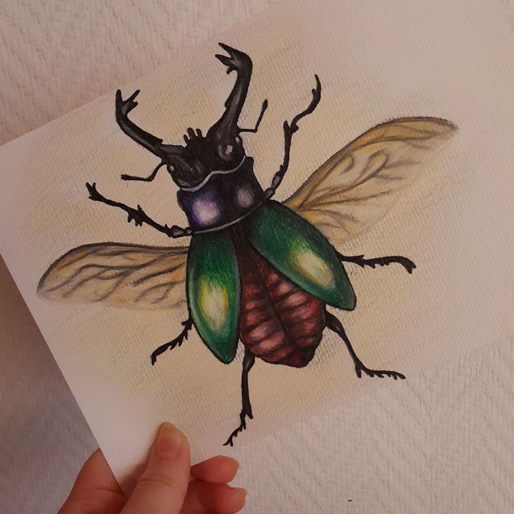 Ein Gutes hatte es dennoch, meine Holzstifte kamen mal wieder so richtig zum Einsatz, nach dem ich im Alltag doch eher zu anderen Farben greife. Und so habe ich mich fleißig daran gemacht Mutter- und Vatertagskarten zu malen. Wie schon in anderen Beiträgen erwähnt, liebt meine Mama Käfer. Und da Grün ihre Lieblingsfarbe ist, lag das Motiv nahe. Vielleicht wurde ich dabei auch von den schillernden Käferchen aus meinem letzten Beitrag inspiriert.