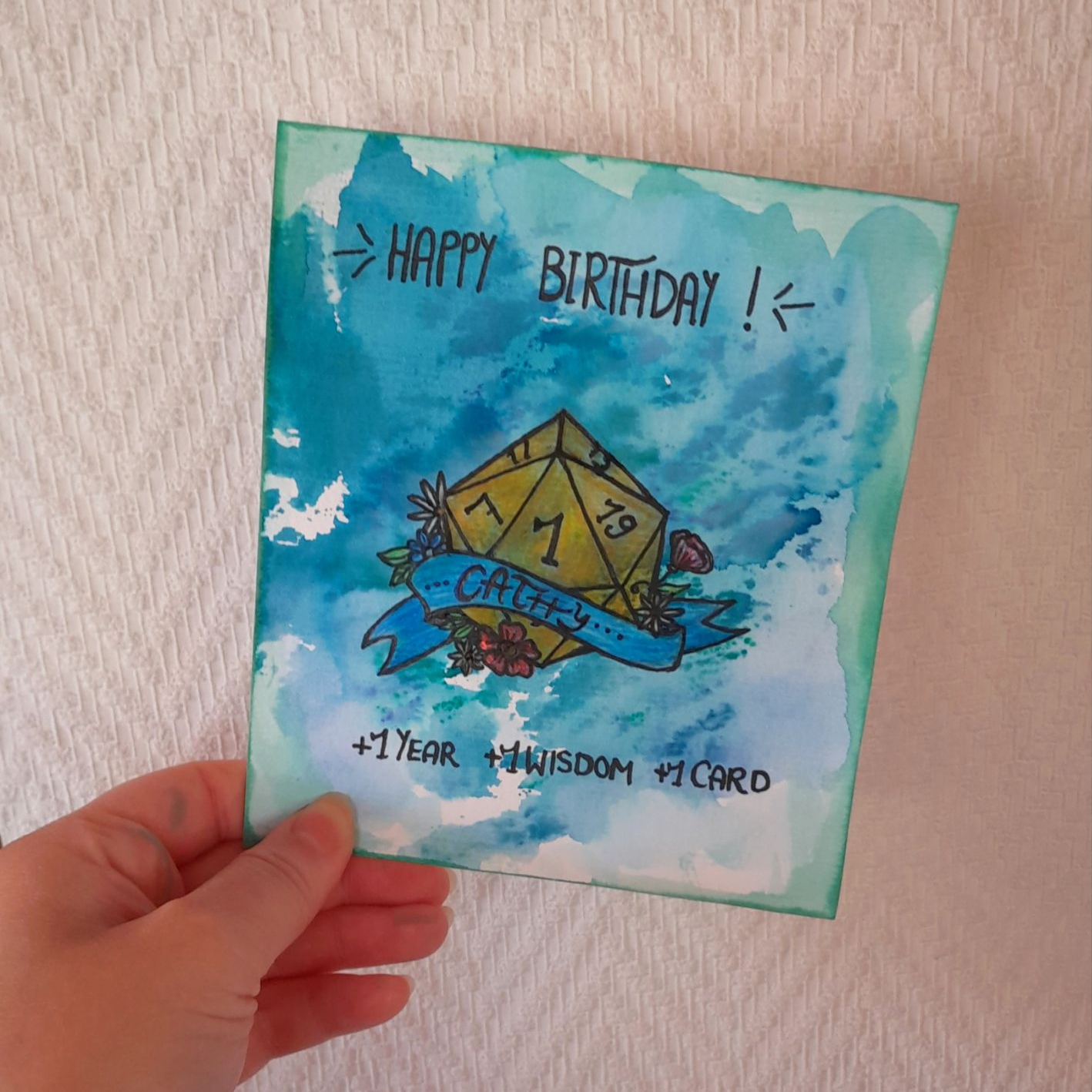 Glücklich über die neuen Möglichkeiten habe ich mich an eine Geburtstagskarte gemacht. Und da meine Schwester bekanntlich unsere DnD- Spielleiterin ist, war es keine Frage welches Thema die Karte haben sollte.
