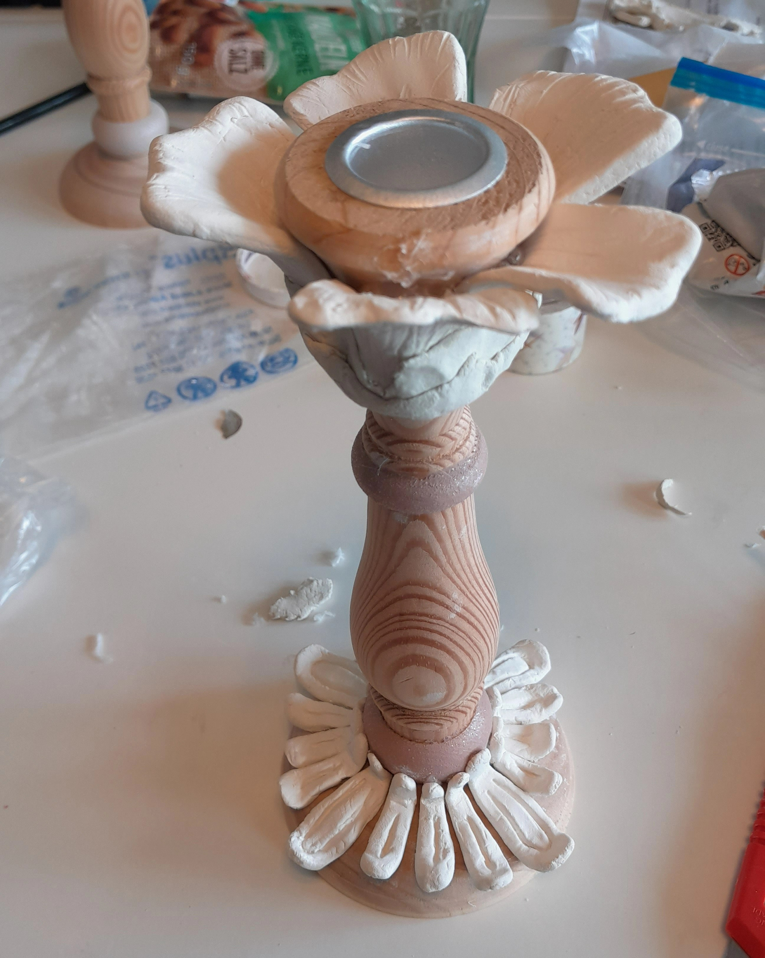 Lufttrocknende Modeliermasse nutze ich gerne für DIY-Projekte, die ich schnell und einfach Zuhause umsetzen möchte. Für die ich keine lange Trocknungszeit einberechnen möchte und nichts groß vorbereiten will. Er lässt sich ähnlich verarbeiten wie Ton, ist jedoch weniger haltbar, besonders in Verbindung mit Flüssigkeiten. Er ist nicht Lebensmittelecht und für Garten und Küche somit relativ ungeeignet. Dafür aber super einfach in der Handhabung. Nach wenigen Tagen können die Stücke bemalt werden und müssen nicht gebrannt werden.