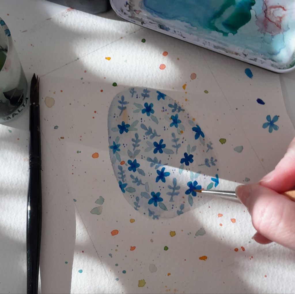 Mit weiser Acrylfarbe habe ich die Gespenster grundiert und anschließend die Falten der Laken schattiert. Nachdem die dunklere Farbe gut trocken war, kam eine weitere dünne Schicht weiß darüber. Ähnlich bin ich auch bei dem kleinen Kürbis vorgeganngen.