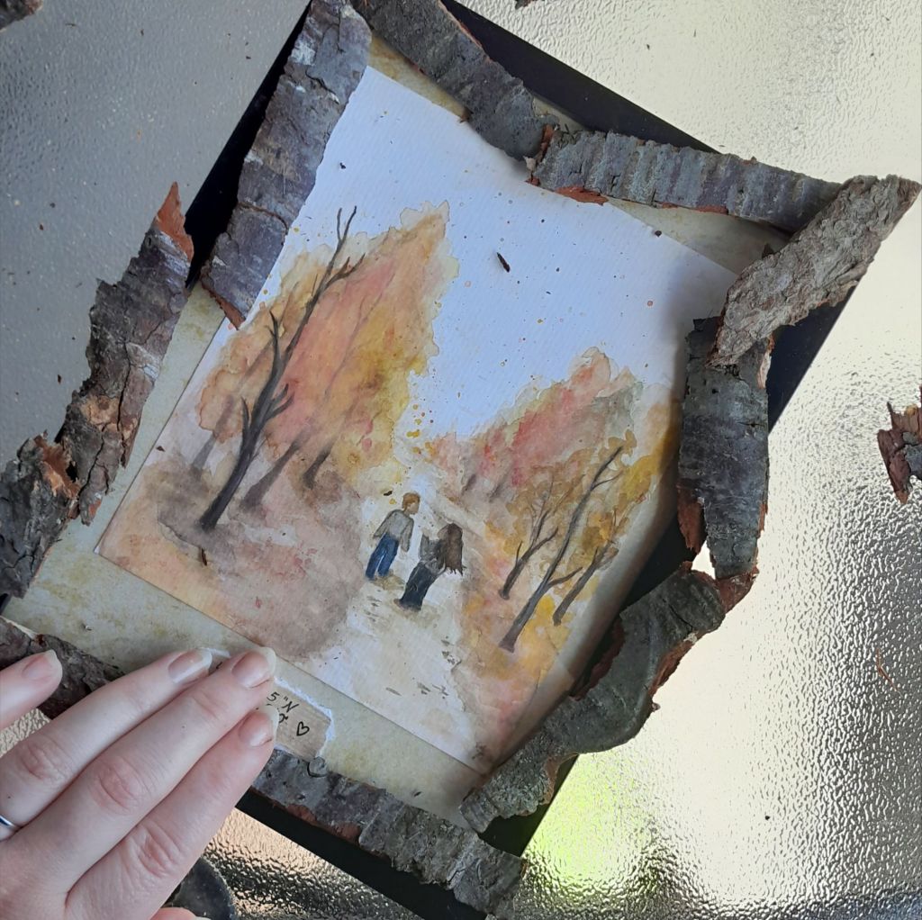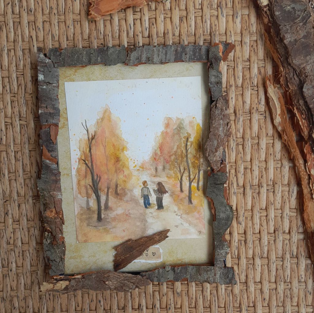 Dieses Aquarellbild hat Tim dieses Jahr zu seinem Geburtstag bekommen. Es zeigt uns an dem Tag an dem wir zusammen gekommen sind. Es war ein wunderschöner Oktobertag. Noch ein Grund mehr den Herbst zu mögen. ^^