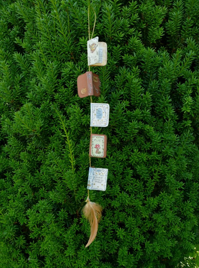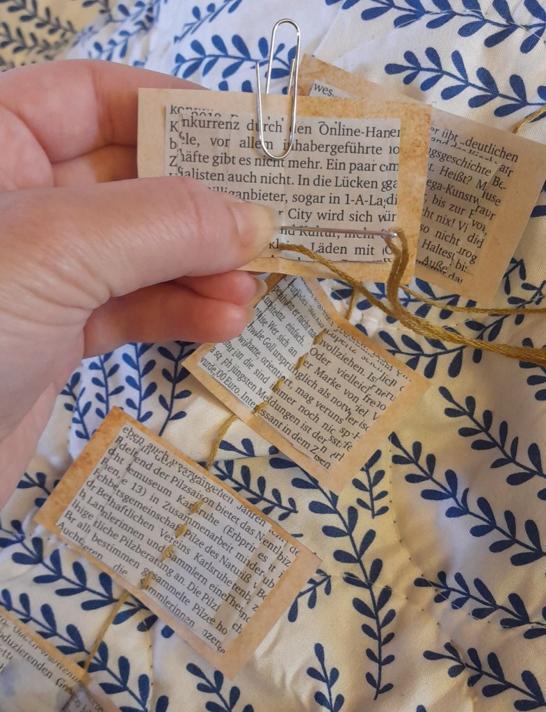 Anschließend habe ich mit Nadel und Faden alles an einander genäht. Nach jedem Buch habe ich einen Knoten gemacht, damit die Bücher alle an ihrem Platz bleiben.