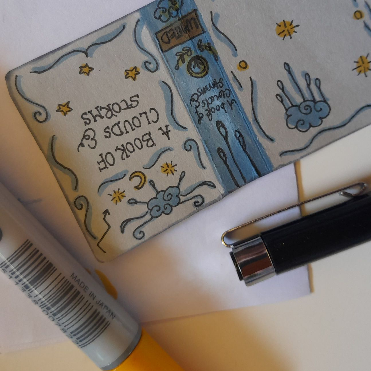 Also habe ich spontan lauter kleine Buch-Umschläge gebastelt. Dafür habe ich meine Copic-Marker verwendet und meiner Fantasie freien Lauf gelassen. Dabei habe ich auch einen kleinen Insider für meine Cousine versteckt ^^.