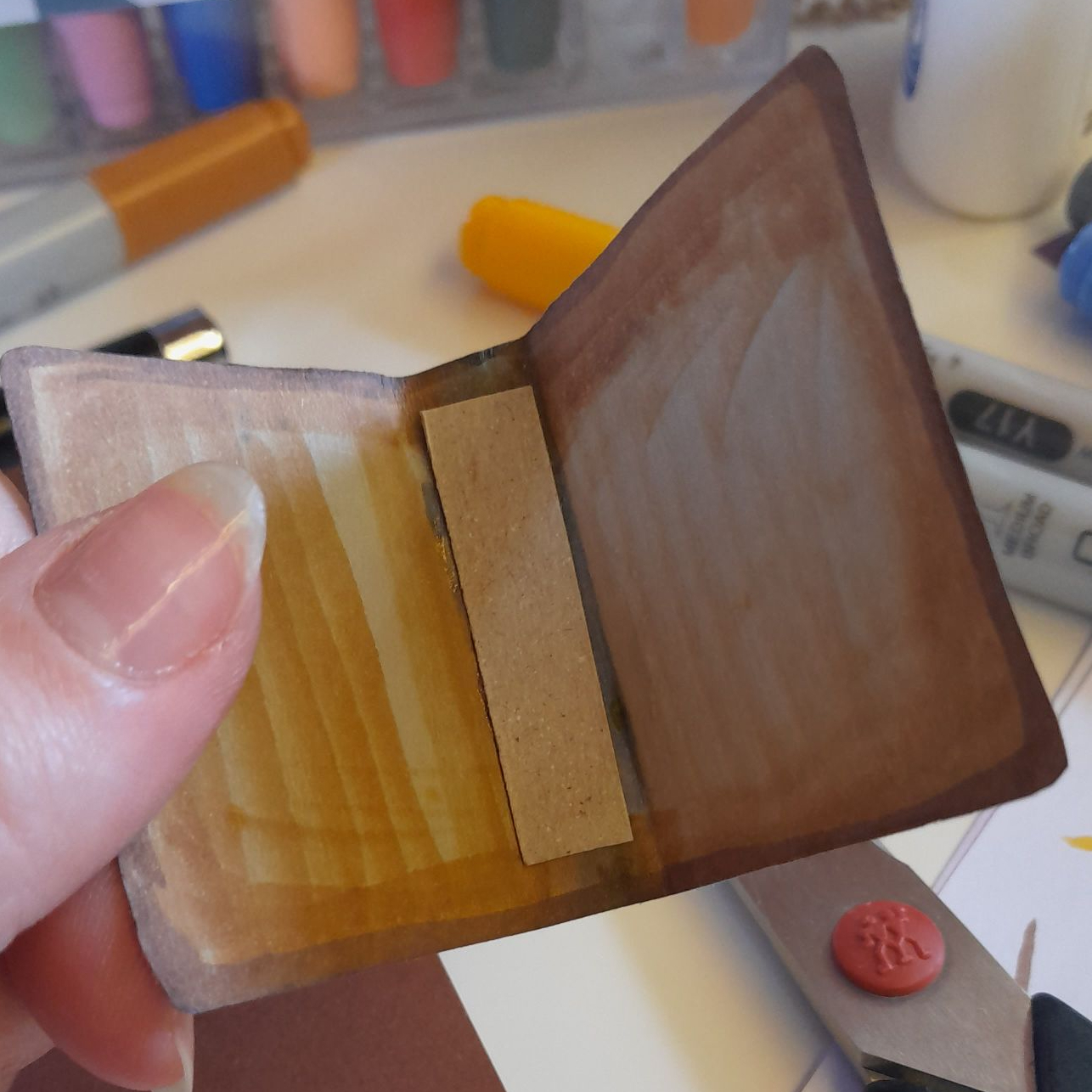 Damit die Buchrücken stabiler sind, habe ich sie mit kleinen Stückchen Karton verstärkt. Für einen Vintage-Used-Look habe ich einen Nagelfeile zur Hand genommen und die Kanten angefeilt.