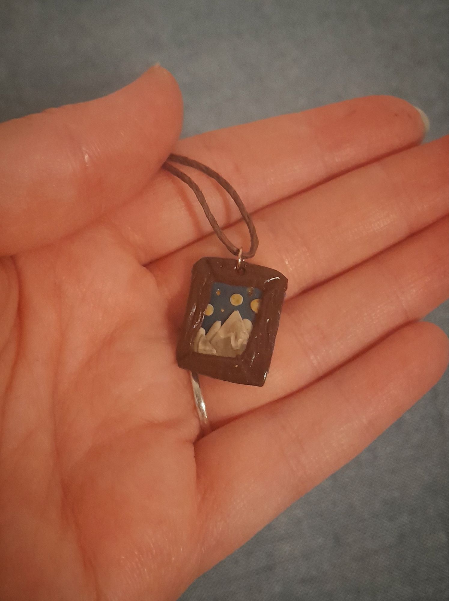 Da ich in diesem Jahr meine Liebe für modellierte Schmuckstücke gefunden habe, durften auch diese als Geschenke nicht fehlen. Zwei Ketten und zwei Broschen habe ich gemacht. Wie immer habe ich sie modelliert, bemalt, gebrannt und lackiert.