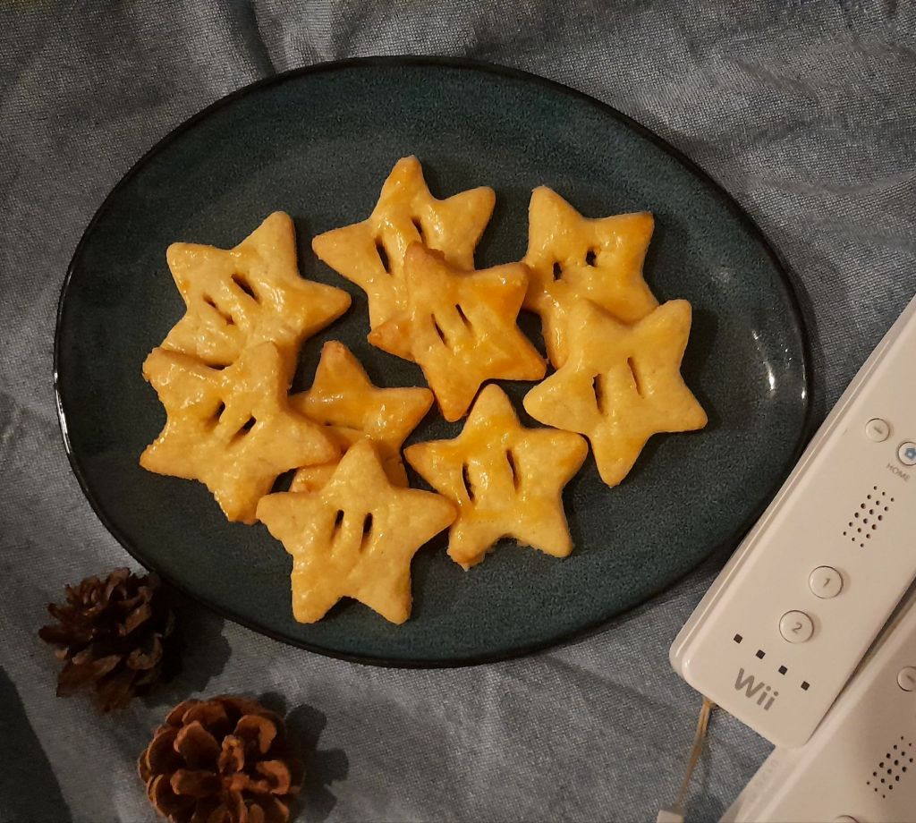 Daher haben wir unsere Butterplätzchen in diesem Jahr ganz passend als knuffige, kleine Mario-Sterne gebacken.