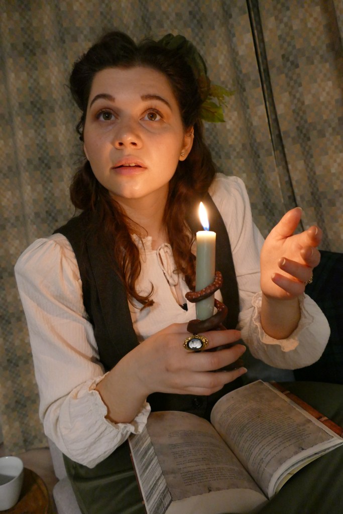 Ich habe die Ohrringe inzwischen schon fleißig in meinem Alltag getragen. Besonders gut gefallen sie mir zu einem schwarzen Rollkragenoberteil, das die rot-brauen Blätter richtig zur Geltung bringt. Kombiniert habe ich dazu filigranen Goldschmuck und eine dunkle Bundfaltenhose. Die hübsche Vintage-Weste aus dem Second-Hand greift die Herbstfarben auf und gibt dem Outfit einen romantisch-nostalgischen Dark Academia Look.
