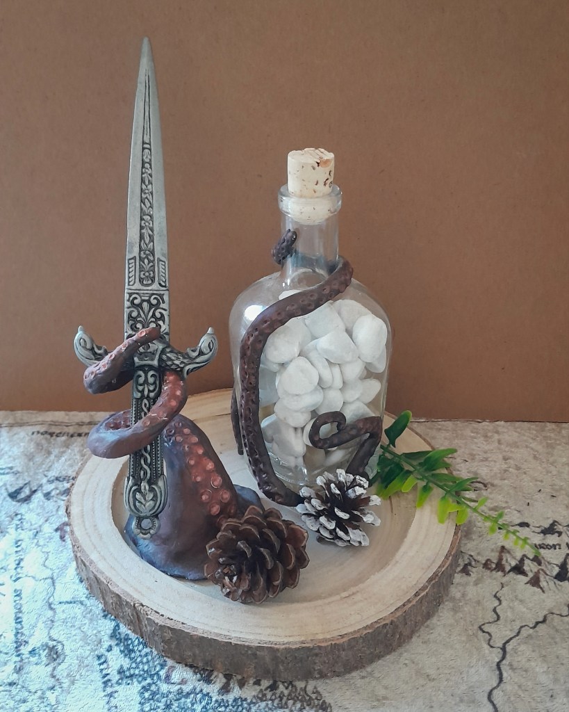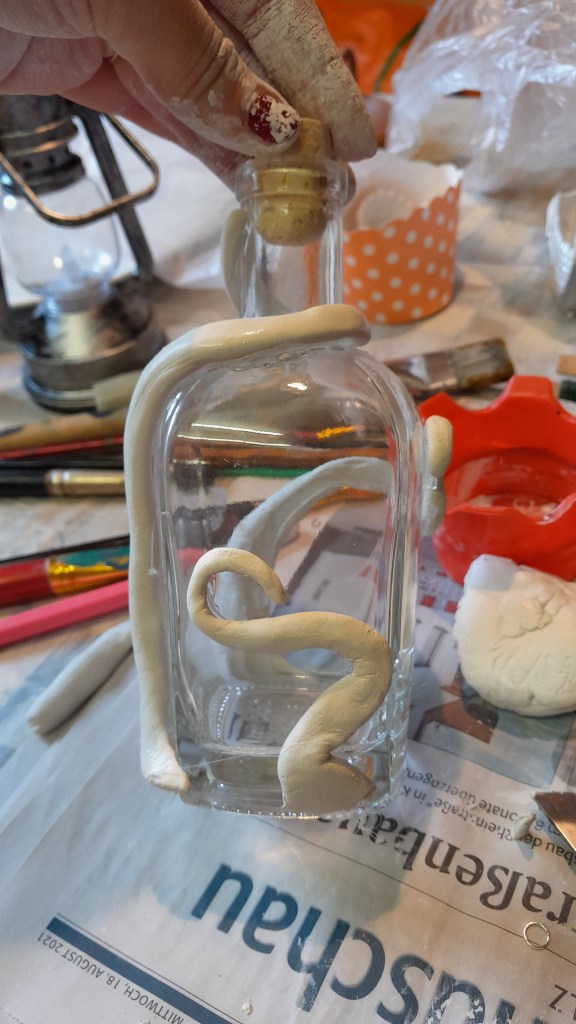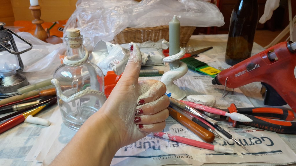 Die Kanten habe ich mit den Fingern und passendem Werkzeug glattgestrichen. Anschließend habe ich vorsichtig die Blatt-Adern mit Hilfe eines Schaschlik-Spießes eingeritzt.