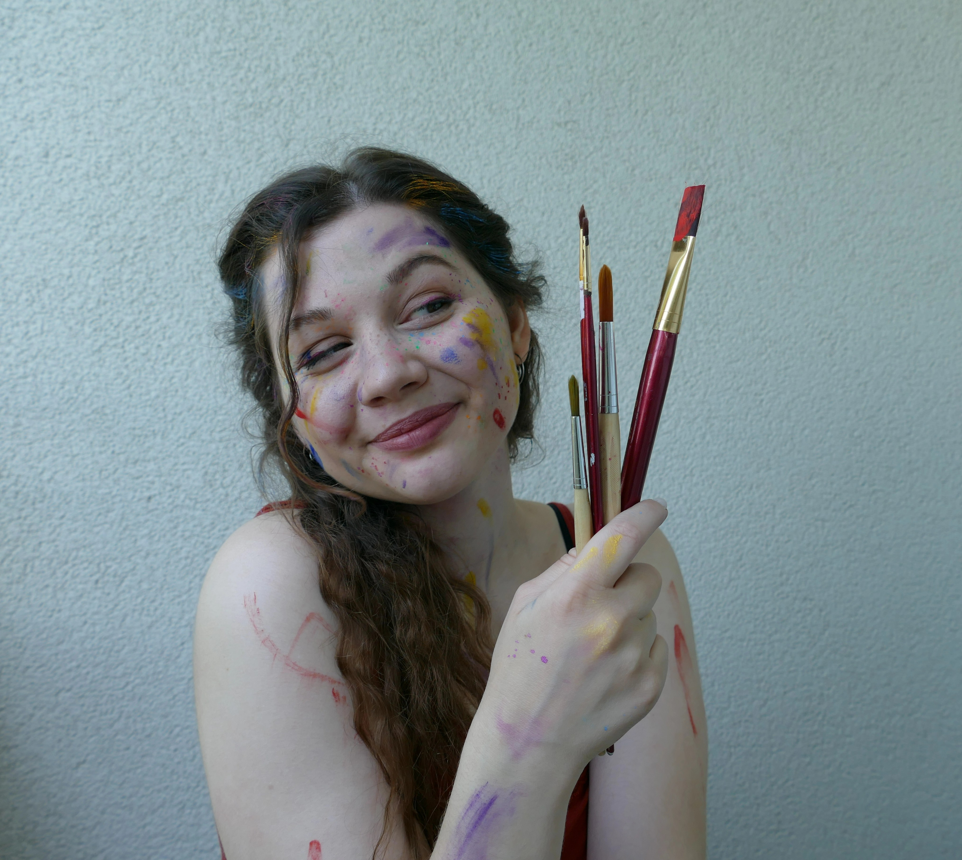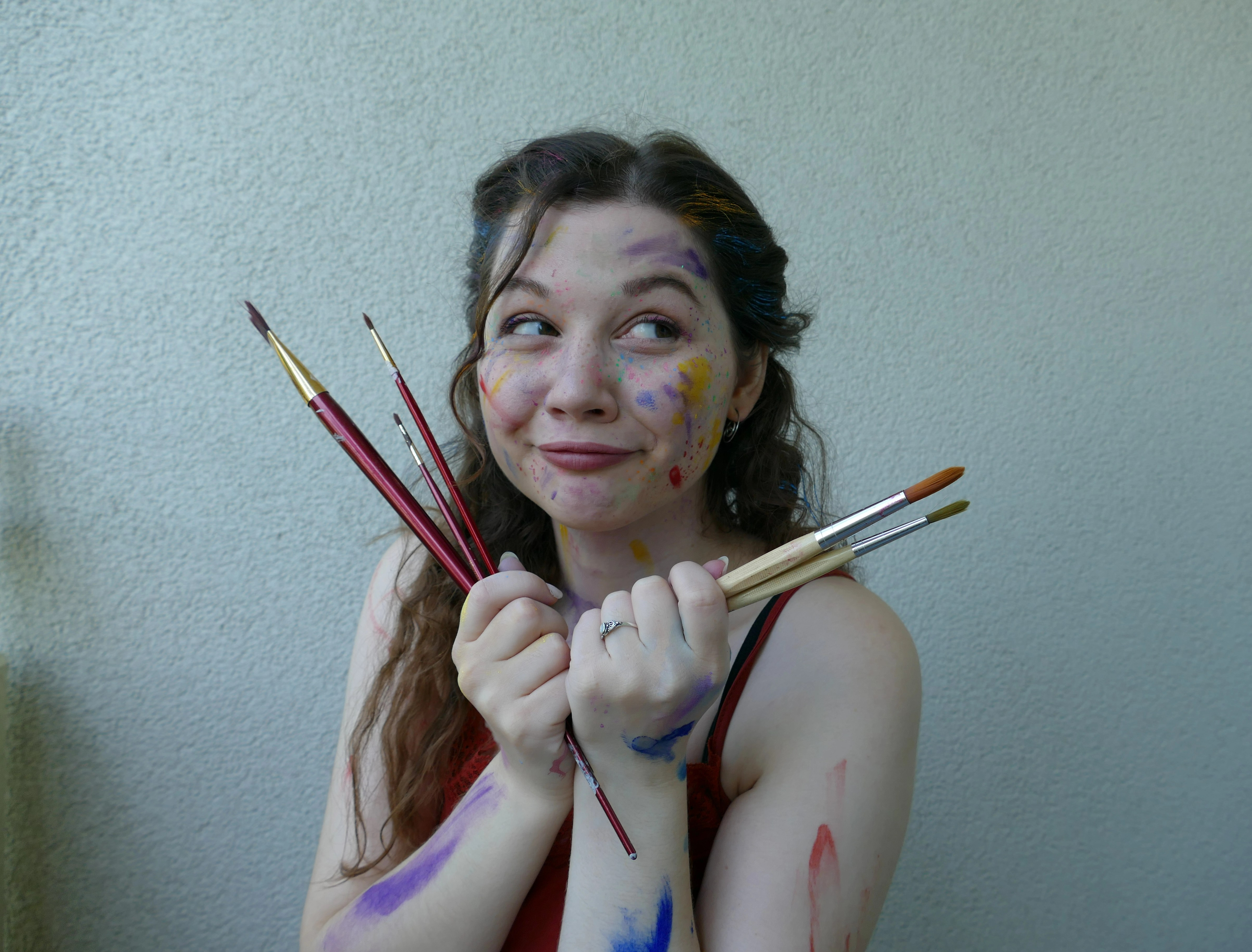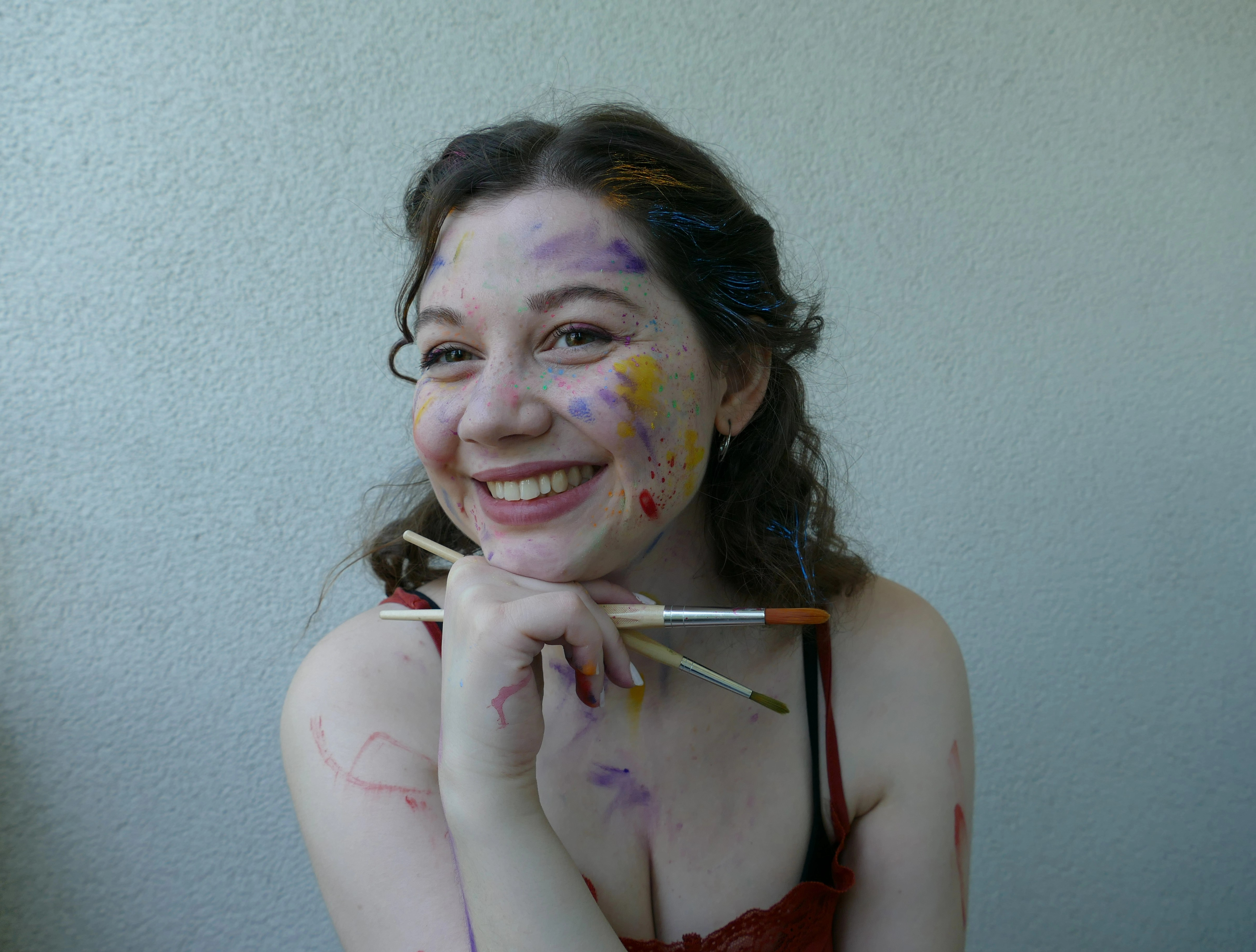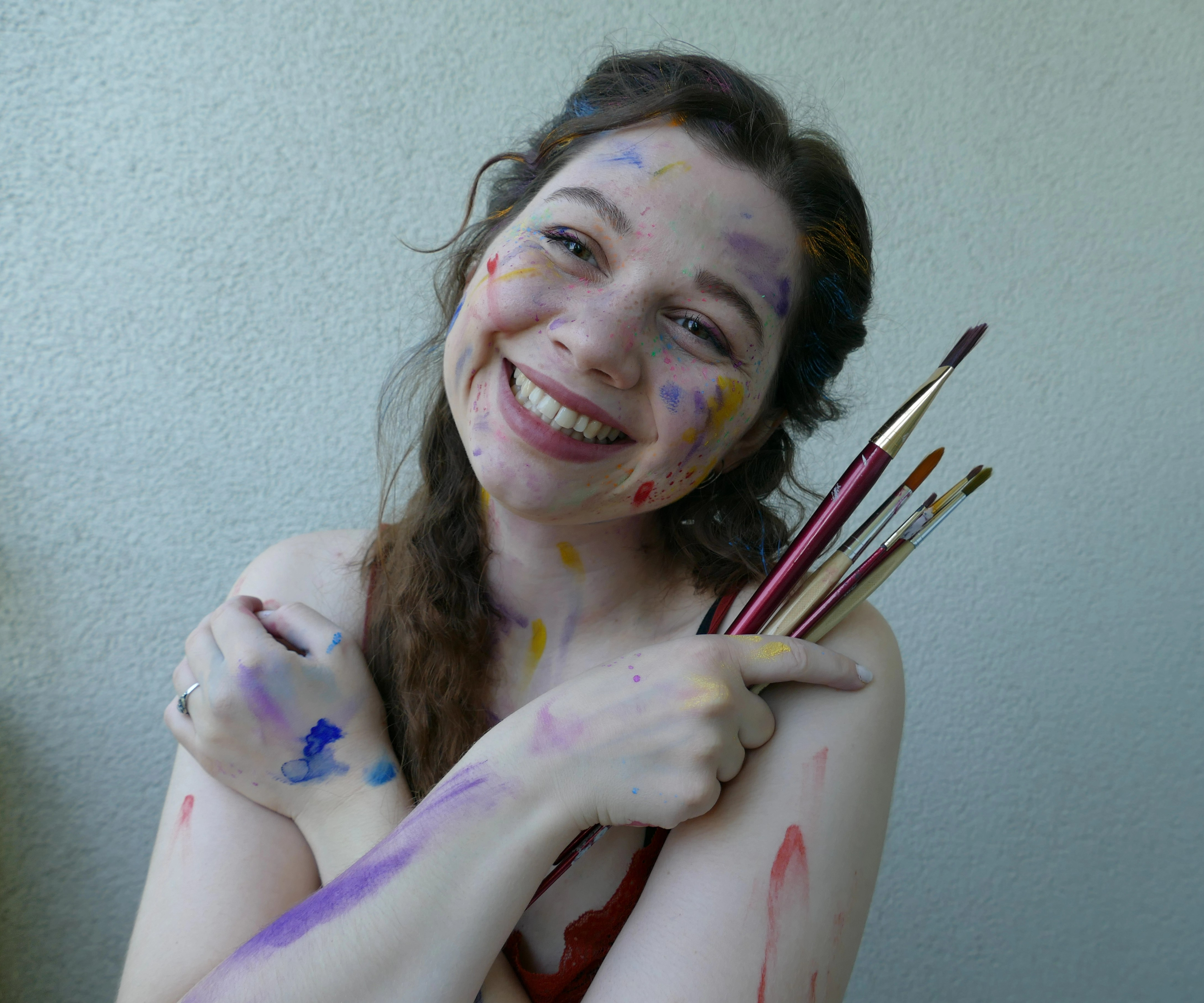 Für mein Profilbild wollte ich etwas, das meine Liebe zur Kunst, Kreativität und ganz viel Farbe widerspiegelt. Und außerdem Bilder auf denen ich mich und meinen Charakter wiedererkenne und mich nicht verstellt fühle. Ich hatte sehr viel Spaß vom Make-up, übers Shooten bis hin zum Auswerten der fertigen Bilder.